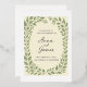 Faire-part de mariage romantique avec feuilles d'eucalyptus aquarelle, bordure de verdure et élégants noms de calligraphie. Style naturel et bio pour mariages rustiques.