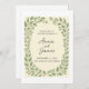 Faire-part de mariage romantique avec feuilles d'eucalyptus aquarelle, bordure de verdure et élégants noms de calligraphie. Style naturel et bio pour mariages rustiques.