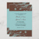 Cette invitation distinguée présente des tourbillons floral brun chocolat et bleu turquoise avec un bord de dentelle simple pour une zone d'information sur l'invitation. Cette belle et élégante invitation au mariage est idéale pour les mariages qui utilisent les couleurs marron et turquoise pour une ambiance romantique. Cherchez le RSVP correspondant dans mon magasin !