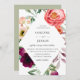 Belle aquarelle bohème cadre diamant fleuri avec vert, pêche, violet et rose, feuillage et fleurs, faire-part de mariage. Le dos de la carte présente une élégante couleur verte à la brume d'olive.