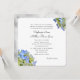 Invitations de mariage floral bleu clair. Cartes carrés modernes avec de jolies hydrangées bleues dans les coins et un design floral blanc à l'envers. Texte imprimé en noir avec modèle en haut pour les parents de la mariée, qui invitent les invités. Ajoutez également les parents du marié avec la ligne "fils de". *Laissez un espace entre les lignes de texte imprimées pour répliquer cet aspect.