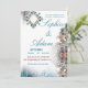 Apportez une élégance intemporelle à votre jour spécial avec cette invitation de mariage inspirée du Maroc, mettant en vedette des tons sarcelle luxueux, des accents dorés doux et des motifs arabesques complexes.