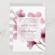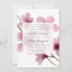 Faire-part de mariage fleurie élégante et moderne, arrière - plan de fleurs de cerisier roses douces. Vos détails mariages sont superposés sur un élément blanc pur dans un élégant lettrage gris accentué avec un script de calligraphie écrit à la main.