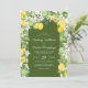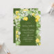 Faire-part de mariage moderne d'été avec un centre de table en arche vert foncé, un ensemble de citrons et limes, feuillage botanique et un modèle de mariage élégant.