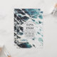 Cette invitation marine moderne bleu est parfaite pour une croisière ou un fiançailles sur la plage, mariage après la fête, la retraite, la remise des diplômes ou tout événement heureux. Le design simple présente un paysage marin magnifique, des vagues, des animaux de mer et des récifs colorés.