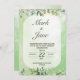 Il s'agit d'une faire-part de mariage à l'aquarelle décorée sur le thème des feuilles d'arbres verts frais. C'est un design avec un message qui bénit un mariage clair et frais comme une feuille.
