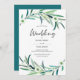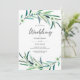Superbe aquarelle verte Eucalyptus feuilles et couronne de fleurs décorent cette invitation de mariage simple et élégante. Convient à un beau mariage de jardin extérieur au printemps ou en été ou même un mariage australien. Objets correspondants également disponibles.