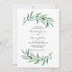 Superbe aquarelle verte Eucalyptus feuilles et couronne de fleurs décorent cette invitation de mariage simple et élégante. Convient à un beau mariage de jardin extérieur au printemps ou en été ou même un mariage australien. La page précédente présente un motif feuille en chute sur vert foncé. Objets correspondants également disponibles.