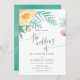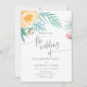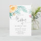 Menthe, rose et jaune invitations de mariage exotique avec typographie d'écriture avec des pivoines, eucalyptus, rosehips, succulent, lisianthus, feuilles menthol et succulents