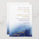 Ces invitations de mariage élégantes, modernes, bleues et dorées sont entièrement personnalisables et parfaites pour un mariage contemporain.