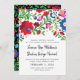 Parfait pour une destination ou un mariage à thème mexicain, cette invitation verticale et entièrement personnalisée blanche présente un cadre de fleurs et de feuillage inspiré de la broderie colorée d'artisans mexicains natifs. L'arrière à motif continue le thème ou peut facilement être remplacé par une photo fiançailles préférée.