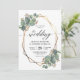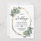 Il s'agit d'une belle faire-part de mariage avec eucalyptus et de conception géométrique dorée. Un arrière - plan assorti avec un motif feuille d'eucalyptus est inclus.