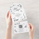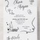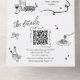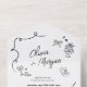 Ce faire-part de mariage est doté d'un design de gribouillis fantaisiste et ludique, ce qui en fait une invitation tout-en-un amusante et unique. L'avant présente les noms du couple dans une police de caractères moderne, accompagnée de doodles dessinés à la main d'objets festifs comme des verres à vin, des anneaux et un gâteau. L'invitation peut être rendue encore plus vibrante en changeant la couleur des emblèmes et du texte des doodles, ajoutant une touche personnalisée à ce design charmant. Vous pouvez le modifier en cliquant sur le bouton "Modifier à l'aide de l'outil de conception".