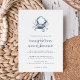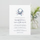 La faire-part de mariage côtière chic présente une illustration de crabe bleu aquarelle en haut en bleu de port défraîchi, avec vos détails mariages en bleu marine classique. Parfait pour les mariages de plage, d'été ou de nautique, surtout ceux situés dans les régions de crabe bleu du milieu de l'Atlantique, ces invitations de mariage de style côtier s'inversent en bleu de port solide.
