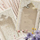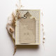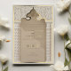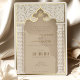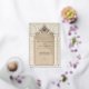 Cette carte de faire-part de mariage magnifiquement conçue exhale l'opulence et la tradition avec sa dentelle architecturale et ses accents de papier peint. L'entrée de l'invitation présente un motif étonnamment complexe qui s'inspire des grandes arches et colonnes de l'architecture islamique, mis en valeur dans une riche palette d'or, de crème et d'ivoire. Le dos complète le front avec son propre dessin détaillé, en s'harmonisant pour créer une invitation qui n'est pas seulement un prélude au mariage mais aussi un gardien chéri. Cette carte est parfaite pour les couples qui souhaitent honorer leur patrimoine tout en faisant une déclaration luxueuse.