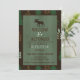 Doté d'un arrière - plan à grains de bois et d'un orignal rustique aux éléments naturels. Cette invitation est parfaite pour tout mariage extérieur, mariage à thème nature, mariage cabine, mariage lodge, mariage rustique ou mariage camping/glamping