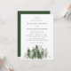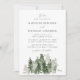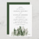 Invitations de mariage élégantes et rustiques affichant vos noms et détails mariages en texte noir avec des pins couleur vert foncé chasseur et sauge. Les invitations de mariage d'automne ou d'hiver disposent d'un magnifique script de calligraphie moderne. Le mariage des bois invite à rebrousser chemin vers un arrière - plan vert chasseur foncé. Conçu pour coordonner avec notre collection Rustic Pine Forest mariage.