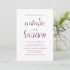 Invitez aimé à assister à votre jour spécial avec nos invitations de mariage de simplicité. Les invitations de mariage de minimaliste combinent la calligraphie élégante avec un modèle de couleurs pourpre et blanc de prune. Personnalisez les invitations de mariage avec vos détails de mariage.