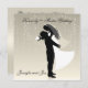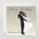 Magnifique faire-part de mariage avec une mariée et silhouette de mariée sur arrière - plan doré avec étoiles dans le arrière - plan. Le design est simple, élégant et très romantique.