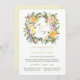 Ce joli faire-part de mariage est parfait pour les mariages de fin d'été ou d'automne, mais aussi pour les événements d'été. Il dispose d'une belle couronne circulaire fleurie en haut, avec les initiales de la mariée et du marié au centre. Les couleurs incluses dans la couronne sont l'or, l'orange mandarine, le jaune citron et le vert, ainsi que des touches de violet et de rouge. Magnifique ! Sous la couronne se trouve votre texte personnalisé en or et or gris. L'image et le texte sont placés sur un élégant arrière - plan blanc. L'arrière de l'invitation est un or antique doux pour contrebalancer le front blanc.
