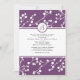 Cette élégante invitation présente un design floral violet et blanc classique avec un simple monogramme et un espace pour les informations sur les invitations. Cette belle et élégante invitation au mariage est idéale pour les mariages aux couleurs violettes et blanches pour une ambiance romantique. Cherchez le RSVP correspondant dans mon magasin !