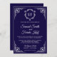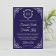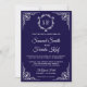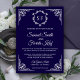 Éblouissez vos invités avec cette faire-part de mariage de style vintage avec une élégante bordure blanche ornée et un beau monogramme contre un arrière - plan bleu foncé. Ajoutez simplement les détails de votre événement sur ce modèle facile à utiliser pour en faire une invitation unique. Cette carte est entièrement personnalisable. Tous les textes sont modifiables et la couleur arrière - plan peut être facilement changée selon ce qui vous convient le mieux.