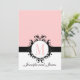 étiquette vintage damassé rose, noir et blanc chic, avec un faire-part de mariage monogramme moderne. De belles invitations de mariage polyvalentes que vous pouvez changer la couleur arrière - plan pour convenir à vos couleurs mariages.Art et design by Elke Clarke © 2010. Customisez avec vos noms, monogramme, date mariage et votre texte d'invitation de ce joli damas monogrammed faire-part de mariage. Vous pouvez également changer la couleur arrière - plan et n'oubliez pas de tester différents choix de papier, chacun ajoutant son propre "look" en plus du design. Les cartes RSVP assorties d'enveloppes sont présentées ci-dessous.
