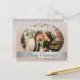 Simple, élégante, adorable carte postale de vacances de Noël avec des flocons de neige argentés rose poudré Enregistrer la Date avec photo.
