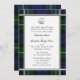 Faire-part de mariage écossais traditionnel de plaid de tartan, fait avec le beau tartan bleu et vert du clan de Forbes. Un secteur blanc encadré par ton argenté des textes, au milieu, a un symbole en spirale de Koru, au dessus. Le texte est dans le noir et est entièrement personnalisable pour adapter à vos besoins de mariage. Personnalisez le texte pour adapter à vos besoins.