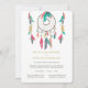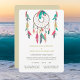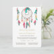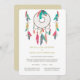 Ce faire-part de mariage à thème occidental unique et coloré présente en haut un joli attrapeur de rêve en plumes, avec votre texte personnalisé en or et gris ci-dessous. De chaque côté du cercle mariage, le attrape-rêves orné de plume sont des cordes de plume apparentes séparées. Les couleurs de l'image comprennent le rose poussiéreux, turquoise, marron, or et plus. Les images et votre texte personnalisé sont placés sur un arrière - plan blanc. Le dos de l'invitation est assorti à l'or antique. Belle ! Assurez-vous de voir les produits mariages correspondants dans notre magasin.