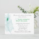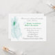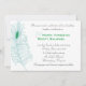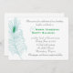 Cette invitation présente une seule plumes de paon stylisée en bleu doux avec l'oeil de la plume contrastant dans un vert émeraude. Le papier est blanc de 110 livres de poids avec une surface mat. Ce papier contient 50 % de contenu recyclé. Cela pourrait aussi servir d'élégante invitation à la fête.