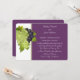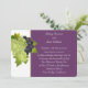Faire-part de mariage présenté dans une présentation classique mais fraîche en couleurs de vert olive et de violet de raisin avec le texte blanc dans un script avec une impression d'art de raisins. Parfait pour le couple qui prévoit de se marier dans la vallée de la napa ou dans n'importe quel domaine vinicole. Customisez cette invitation et changez le texte approprié à votre place.