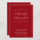 Faire-part de mariage minimal Crimson Red Script Typographie. Impressionnez vos invités mariages avec ce faire-part de mariage rouge pourpre branché avec un magnifique script blanc sur un arrière - plan rouge pourpre. Cette Invitation a un design rouge étonnant, avec des vibrations modernes et minimes, parfait pour votre mariage simple, tendance, minimaliste. La disposition minimale et moderne attire l'attention sur le script blanc, en contraste avec l'arrière - plan rouge. Cette invitation donnera le ton d'un beau cadre mariage, entouré de fleurs neutres ou roses, et d'une décoration mariage assortie. Un complément parfait à toute célébration romantique ou lumineuse et joyeuse.