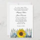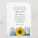 Un tournesol parfait dans un jardin de pelouse en bas de cette élégante invitation au mariage. Consultez l'enveloppe et le timbre postal.