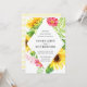 Faire-part de mariage de tournesol en jaune et des touches de fleurs roses et de feuilles verts.Le cadre fleuri est en forme de losange avec les détails de l'invitation à l'intérieur. Le fond de l'invitation est décoré de rayures d'aquarelle jaune pâle. L'arrière - plan de la carte est blanc, mais vous pouvez sélectionner une teinte dans le sélecteur de couleurs.
