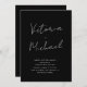 Notre collection moderne "élégant script" allie écriture et typographie minimaliste pour votre faire-part de mariage. Inspiré par le style minimaliste, ces invitations peuvent être customisées avec n'importe quelle couleur pour la typographie et l'arrière - plan. Si vous avez des demandes spéciales, n'hésitez pas à nous contacter par email ou conversation et nous serons heureux de vous aider.