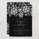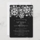 Moderne et élégant modèle de "Faire-part de mariage de vacances argent et noir" avec flocons de neige pailletés argentés et lumières sur fond noir.