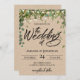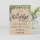 Faire-part de mariage rustique avec feuilles verdoyants et lumières pour la célébration minimaliste de mariage de jardin.