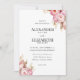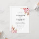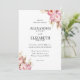 Ce faire-part de mariage présente une bordure d'illustrations de pivoines roses avec des feuilles verts à deux coins opposés contre un arrière - plan blanc propre améliore la beauté florale.