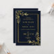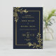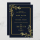 Ces invitations de mariage bleu marine glamour présentent des branches florales dorées dans les angles vers le haut et vers le bas, Une bordure carré or lui donnant un look unique et moderne dans le centre. J'espère que vous l'avez adoré.