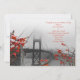 Jolie photo en noir et blanc du pont Golden Gate avec brouillard qui s'enroule. Les belles fleurs orange rendent le invitation unique. Utilisez ces belles invitations de mariage pour invitation vos amis et votre famille à votre mariage. Ce design sur vos cartes apportera une touche spéciale à votre mariage. Chaque invitation est accompagnée d'une enveloppe blanche.