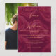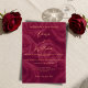 Faites une première impression durable avec cette élégante invitation de mariage bordeaux et or, conçue pour donner le ton à une célébration intemporelle et romantique. Dotée d'une palette de couleurs bordeaux profond luxueux, d'un fond floral rose doux et d'accents dorés raffinés, cette invitation allie sophistication classique et élégance moderne. Parfaite pour les mariages formels, vintage ou romantiques, ce design met magnifiquement en valeur votre date spéciale tout en ajoutant une touche de luxe que vos invités adoreront. Entièrement personnalisable, cette carte "Save the Date" sur le thème de la rose est idéale pour les couples qui prévoient un mariage chic d'automne ou d'hiver, une cérémonie de jardin romantique ou une soirée événementielle glamour.