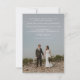 Célébrez les nouveaux Monsieur et Madame avec cette annonce de mariage et invitation de fuite élégante et charmante ! Ce design présente un style moderne et un espace pour que vous affichiez l'une de vos photos de mariage incroyables sur le devant et une seconde photo au verso. Il comprend également un calque de dégradé noir dont vous pouvez ajuster le placement pour mettre en valeur votre texte. Pour ajuster la photo, déplacez simplement le calque de la photo au-dessus du calque de dégradé, puis revenez en arrière lorsque vous avez terminé.