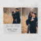 Ce faire-part de mariage moderne a une place pour 2 photos et est écrit dans un script écrit à la main. Il y a des bordures argentées autour des photos.