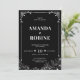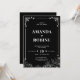 Célébrez votre histoire d'amour avec ce faire-part de mariage élégant noir et blanc, doté d'éléments d'angle ornementaux délicats et d'une base florale magnifiquement détaillée. Ce design intemporel et sophistiqué équilibre minimalisme et charme classique, ce qui le rend idéal pour les thèmes de mariage formels et romantiques.