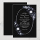 Un élégant faire-part de mariage noir monochrome à fleurs.