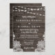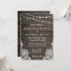 Faire-part de mariage en bois rustique avec lumière à cordes et dentelle|