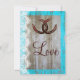 L'arrière - plan est copie en bois affligée de grange avec un bord encadré dans la sarcelle d'hiver qui montre le bois de grange par lui. Il a également une conception imprimée de dentelle d'un côté de l'invitation. Le dos de l'invitation a la même conception rustique de style campagnard avec le mot "amour" en manuscrit. Vous pourriez changer ces mots pour les personnaliser avec les noms des jeunes mariés si vous vouliez à. Ces invitations de mariage de thème de pays sont parfaites pour des mariages de cowboy et des mariages de style campagnard, particulièrement pour des amants de cheval, et n'importe qui utilisant le brun et turquoise dans leurs couleurs de mariage.
