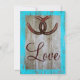 L'arrière - plan est copie en bois affligée de grange avec un bord encadré dans la sarcelle d'hiver qui montre le bois de grange par lui. Le dos de l'invitation a la même conception rustique de style campagnard avec le mot "amour" en manuscrit. Vous pourriez changer ces mots pour les personnaliser avec les noms des jeunes mariés si vous vouliez à. Ces invitations de mariage de thème de pays sont parfaites pour des mariages de cowboy et des mariages de style campagnard, particulièrement pour des amants de cheval, et n'importe qui utilisant le brun et turquoise dans leurs couleurs de mariage.