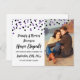 Cartes postales de faire-part de mariage en fuite avec motif de confettis noir et violet, personnalisables avec vos noms, photo et détails du mariage, le moyen idéal pour annoncer votre mariage en fuite à vos amis et famille. Disponibles dans une large gamme de produits de mariage assortis.